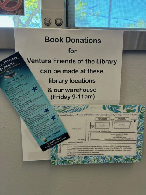 We are no longer accepting donations of books at that location. Donations can be made at Avenue, Saticoy and Hill Road libraries and at our warehouse on Fridays from 9 to 11 am.